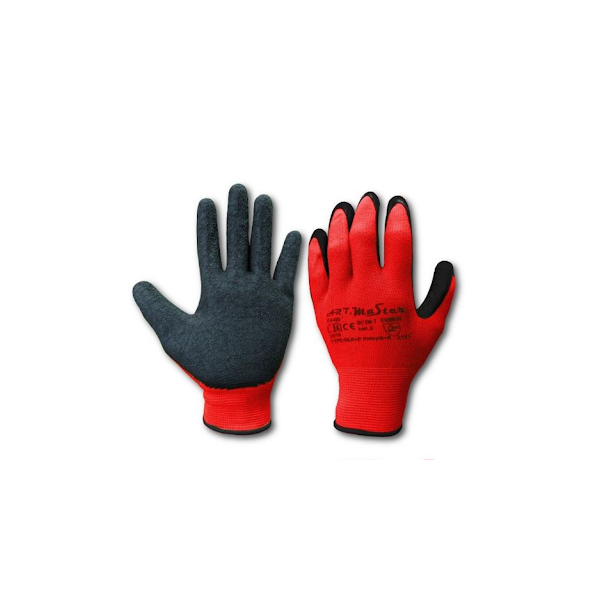 Elastischer Stoffhandschuh beschichtet mit weichem geschäumtem Latex teilweise auch am Rückenteil.