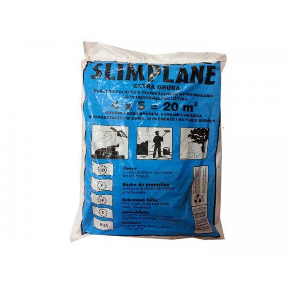 THICK PROTECTIVE FILM 20m2 SLIMPLANE ist eine Schutzfolie mit einer Vielzahl von Anwendungen beim Schutz der Oberfläche des Autos. Sehr langlebig dank entsprechender Dicke. Sorgt für hygienische Arbeitsbedingungen. Schützt die Oberfläche vor Beschädigungen und Kratzern. Es wird am häufigsten bei Bau-, Renovierungs- und Veredelungsarbeiten sowie in Autowerkstätten für Malerarbeiten verwendet. Auch empfohlen für den Einsatz während der Lagerung von Waren im Lager als zusätzliche Sicherheit. Es schützt perfekt vor Verunreinigungen, die bei Bau- und Renovierungsarbeiten entstehen, wie Staub, Staub, Farbe sowie viele andere äußere Faktoren.