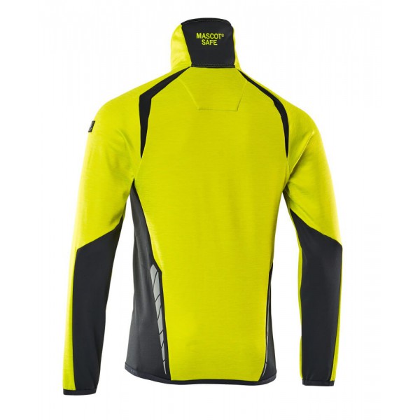 - Elastisch, am Hals anhaftend hoher Kragen.