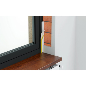 Die Lamellen der Serie BP12 sind typische, häufig verwendete Kompensatoren für die ordnungsgemäße Ausführung von Kompensatoren zwischen Fensterrahmen und Innenputz. Das Band hat einen speziellen nicht saugfähigen Expansionsschaum, eine Dichtung, die den Schaum vor Schmutz und Zerstörung und einem verlorenen Element schützt.
