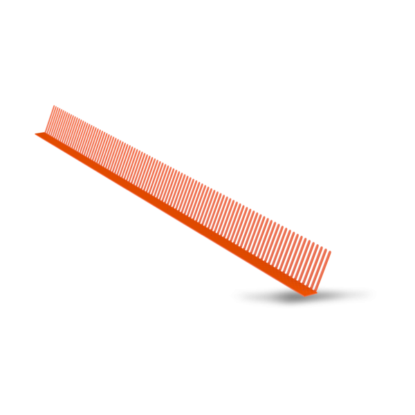 Haubenkamm aus hochwertigem Kunststoff in Spritzgusstechnik. Es wird als Lüftungselement des Traufbereichs in schrägen Dächern verwendet. Dank spezieller Additive ist es witterungsbeständig.