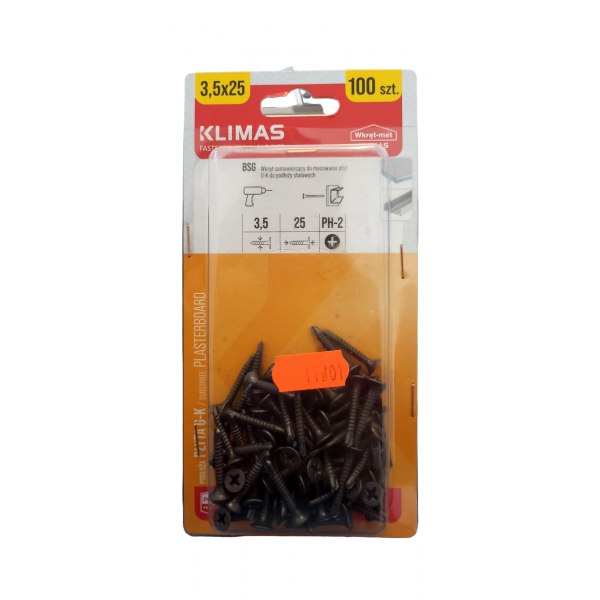 Wkręt samowiercący do mocowania płyt G-K do podłoży stalowych 3,5x25