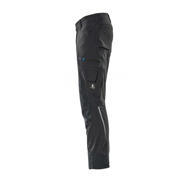 Wodoodporne wykończenie. Nadzwyczajnie elastyczny, lekki i bardzo wytrzymały. Materiału praktycznie nie odczuwa się na skórze, gdyż kieszenie są wkomponowane w design. Podwójne szwy w nogawkach i w kroku. Nogawki w ergonomicznym kształcie. Szlufki do paska. Rozporek zapinany na zamek błyskawiczny. Przednie kieszenie. Tylne kieszenie. Kieszenie na udzie z lewej strony – jedna z klapką z zapięciem na magnes i jedna zamykana na zamek błyskawiczny. Kieszenie na udzie z prawej strony – jedna ze wzmocnioną materiałem CORDURA® kieszonką na nóż i jedna zamykana na zamek błyskawiczny