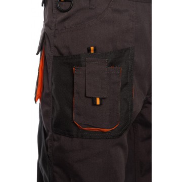 Kieszenie dolne: na lewej nogawce boczna naszywana kryta patką zapinana na rzep, na prawej nogawce naszywana kieszonka na drobne narzędzia